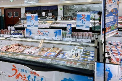 主な助成内容:産地へ訪問する場合の旅費等、広告宣伝費や販促のための資材作成費、商品の輸送費や製氷費等の店頭情報発信費等、売場づくりの外注費等の役務費等、その他の費用